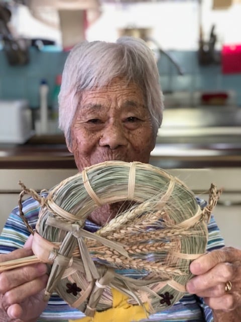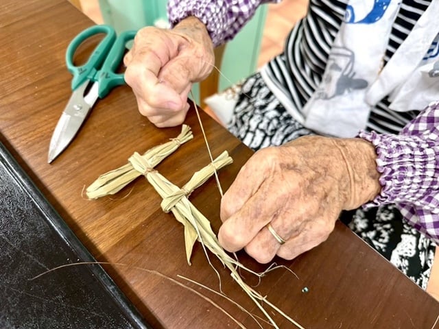島の祈り手のお年寄りたちとスタッフによる手仕事から生まれる島栄え・国栄え(平和と健康)を願う初飾り。