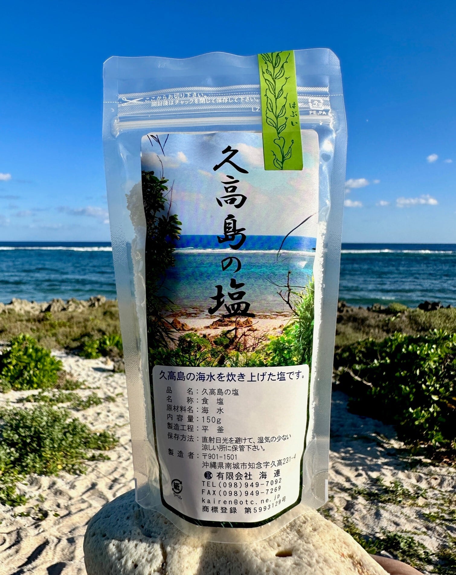 久高島の海水を汲み上げて作られたミネラル豊富な『久高島の塩』とセットでお届けします。