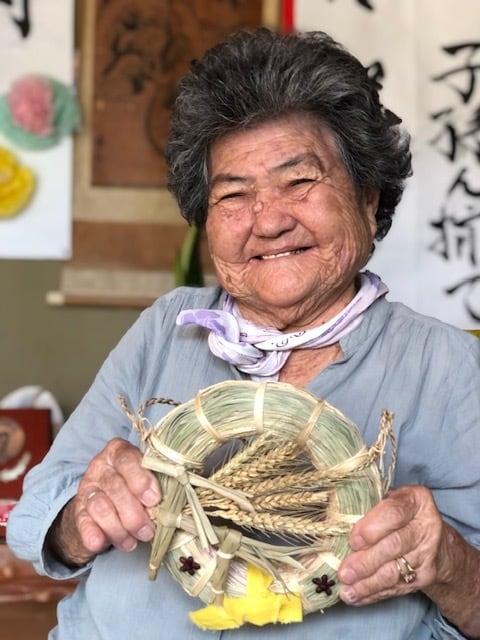 島の祈り手のお年寄りたちとスタッフによる手仕事から生まれる島栄え・国栄え(平和と健康)を願う初飾り。